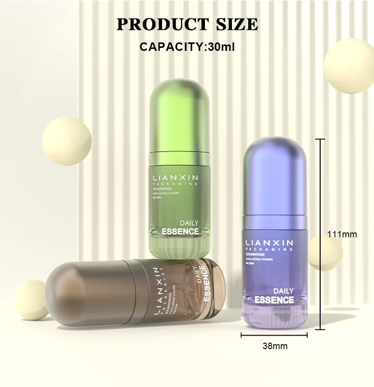 This LIANXIN 30ml serum bottle series seamlessly blends modern aesthetics with superior preservation technology. Crafted from premium glass, it is specifically designed for high-potency skincare formulations such as vitamin C serums and repairing emulsions. Its distinctive rounded “capsule” shape and matte, skin-friendly texture significantly elevate your brand’s visual sophistication.